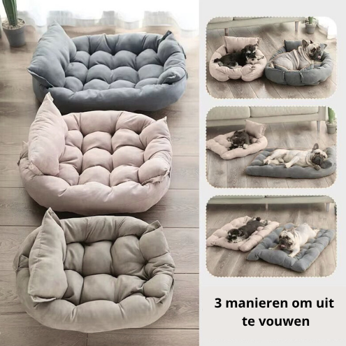 Of je huisdier zich graag uitstrekt, oprolt of knus wegkruipt, dit bed past zich aan. Je vouwt het in een handomdraai om van een platte mat naar een verhoogde sofa of een beschut nest. Perfect voor elk seizoen en iedere stemming van je huisdier.