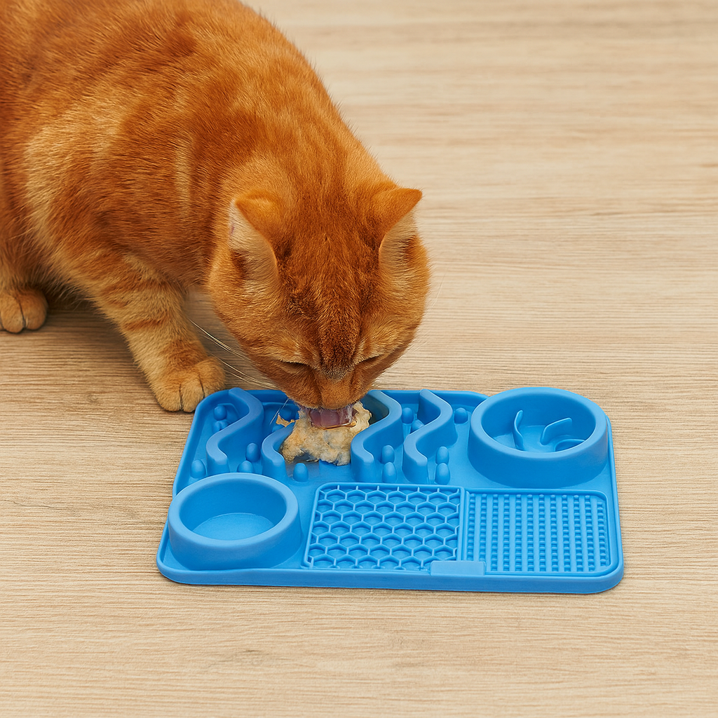 Met 68 zuignappen aan de onderzijde blijft de mat stevig liggen, ook bij enthousiaste likkers en speurneuzen.