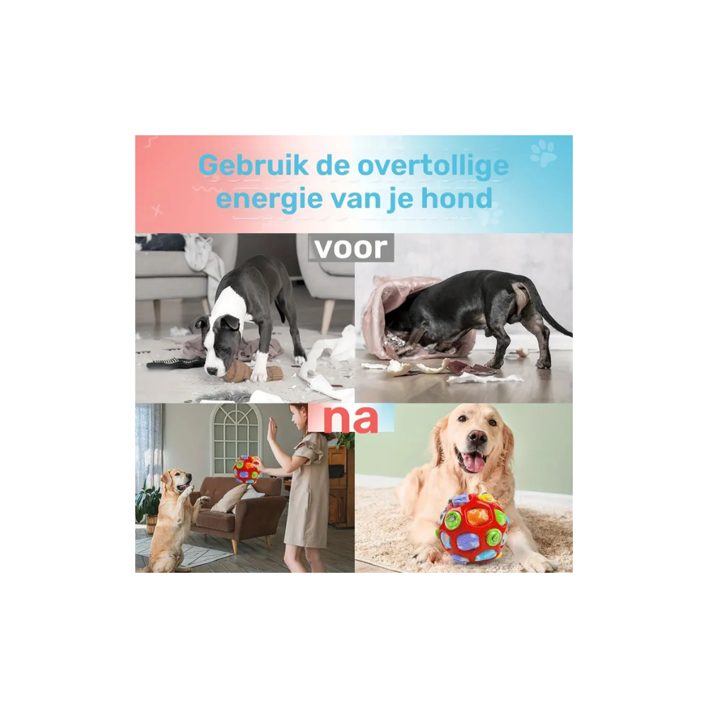 De snuffelbal is een interactief hondenspeelgoed waarin je brokjes of snacks verstopt. Je hond moet actief zoeken en rollen om het voer te vinden, wat zorgt voor mentale uitdaging.