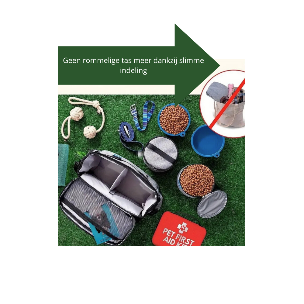Reizen met je hond hoeft geen gedoe meer te zijn. Onze multifunctionele hondenreistas zorgt ervoor dat alle benodigdheden van netjes je huisdier, veilig en overzichtelijk zijn opgeborgen – klaar voor elk avontuur. Gemaakt van hoogwaardige, duurzame materialen en bestand tegen dagelijks gebruik, is dit de ideale reispartner voor korte wandelingen, dagtrips of weekendjes weg.